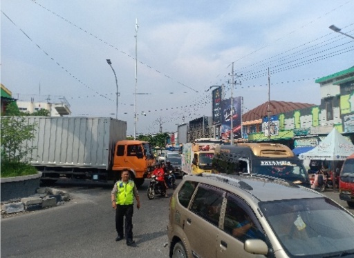 Terlihat Beberapa personil dari Polsek Babat sedang mengatur kendaraan di Bunderan Tugu Wingko Babat, baik dari arah Surabaya, Bojonegoro maupun dari arah Jombang,