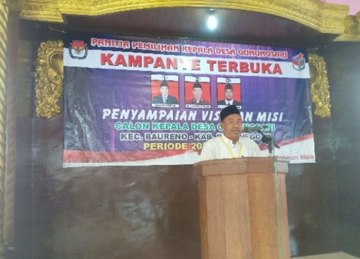 Bojonegoro, arsip.bhantaran.com – Tiga putra terbaik desa Gunungsari, Kecamatan Baureno, Bojonegoro, yang mencalonkan diri sebagai Kepala desa hari ini Rabu, (12/2/2020) menyampaikan Visi Misi dihadapan para pendukungnya, dikemas dengan tajuk kampanye terbuka. Ketiga kandidat ini bertekad bakal membangun Gunungsari menjadi semakin baik, melalui Visi Misi mereka.