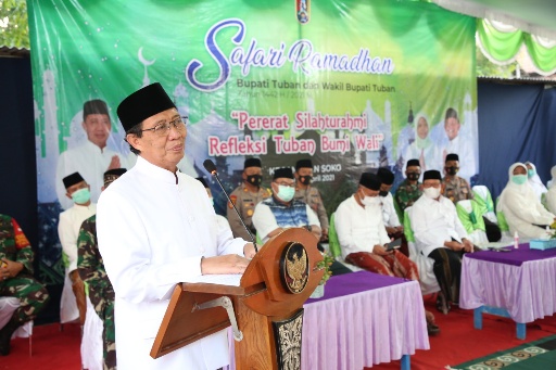 TUBAN, arsip.bhantaran.com – Pemkab Tuban senantiasa melaksanakan pembangunan sesuai peraturan yang berlaku. Hal tersebut disampaikan Bupati Tuban, H. Fathul Huda pada Safari Ramadhan Bupati dan Wakil Bupati Tuban tahun 1442 H/2021 M di desa Jegulo, Soko, Rabu (21/04/2021).
