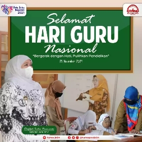 Dalam kesempatan tersebut, Khofifah juga mengajak para guru menebarkan semangat optimisme kebangkitan dari Pandemi. Guru, kata dia, menjadi garda terdepan dalam mengejar ketertinggalan selama Pandemi Covid-19. Selamat Hari Guru Nasional tanggal 25 November 2021. Bergerak Dengan Hati Pulihkan Pendidikan.(Kom/bn)