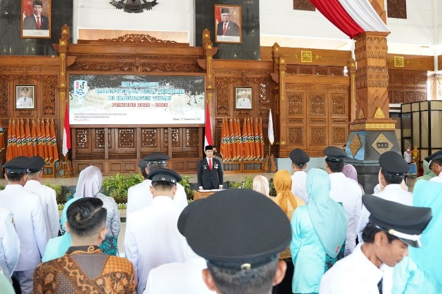 TUBAN, arsip.bhantaran.com – Bupati Tuban, Aditya Halindra Faridzky, SE., lantik 47 Kepala Desa periode 2022-2028 dari 17 Kecamatan di Kabupaten Tuban, Selasa (27/12/2022). Bertempat di Pendapa Kridha Manunggal Tuban, pelantikan Kades pemenang Pilkades Serentak Kabupaten Tuban 2022 disaksikan Forkopimda, Sekda Tuban, pimpinan OPD dan Camat, serta perwakilan keluarga Kades.