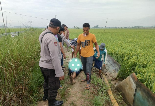 Dari pemeriksaan Petugas Kesehatan Puskesmas Compreng, korban meninggal murni karena tersetrum jebakan tikus di sawah. Selanjutnya kita evakuasi korban dan kita serahkan kepada keluarga untuk dikebumikan.