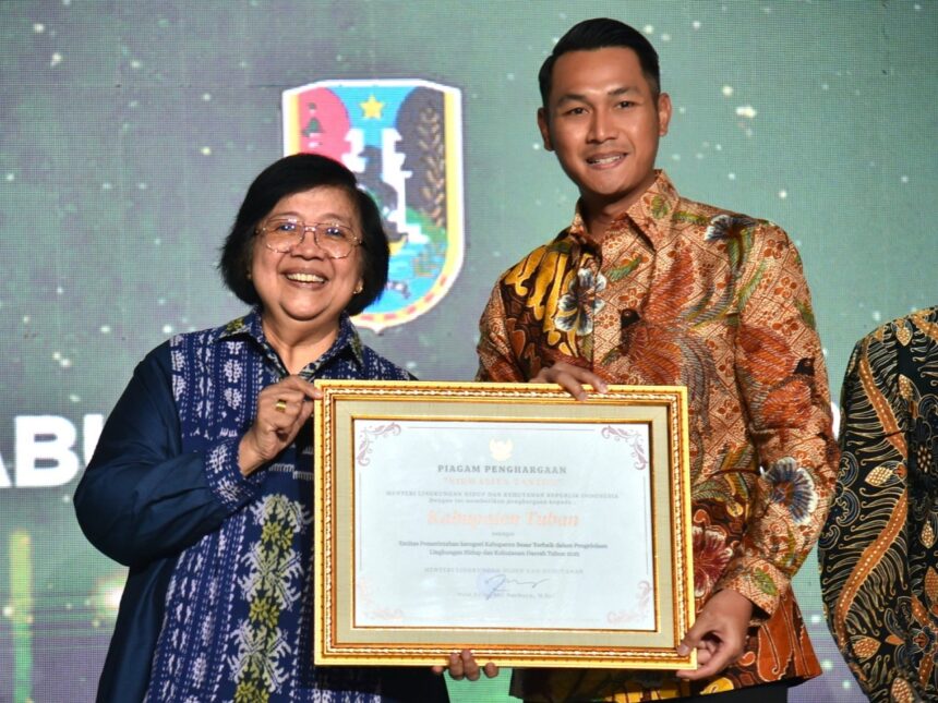 Penghargaan tersebut diserahkan Menteri KLHK, Pof. Dr. Ir. Siti Nurbaya, M.SC., kepada Bupati Tuban, Aditya Halindra Faridzky, SE., pada kegiatan Penganugerahan Penghargaan Green Leadership “Nirwasita Tantra” tahun 2022 dan Launching New Website menlhk.go.id, di Gedung Manggala Wanabakti KLHK, Selasa (29/08/2023).