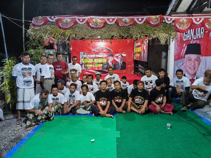 TUBAN, arsip.bhantaran.com – Relawan Ronggolawe Ganjar-Mahfud Mania Tuban terus bergerak untuk melakukan pemenangan terhadap pasangan Ganjar Pranowo dan Mahfud MD dengan menggelar peresmian posko pemenangan yang dilanjutkan dengan deklarasi dukungan. Kegiatan tersebut dilaksanakan di Desa Wotsogo, Kecamatan Jatirogo malam (9/11).