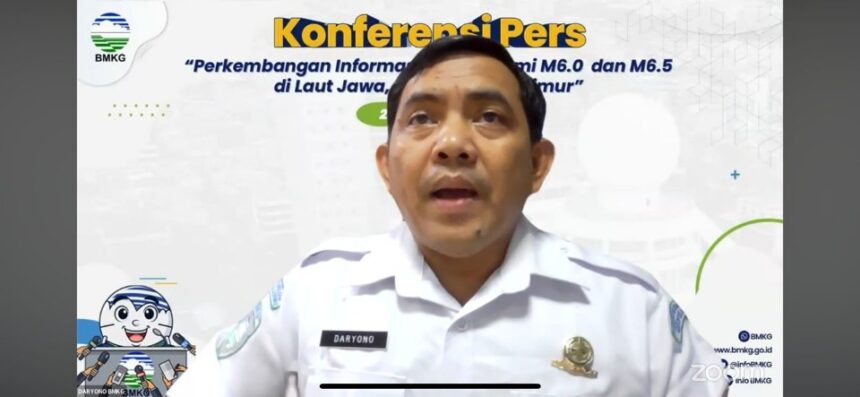 Dalam siaran daring tersebut, Daryono mengungkapkan jika gempa bumi Bawean yang sebelumnya disebut gempa bumi Tuban, yang terjadi Jumat siang sekitar pukul 11.22 WIB dengan kekuatan magnitudo 6.0 skala richter. Lokasi di laut 37 km arah barat pulau Bawean, 126 km arah timur laut Tuban Jawa Timur, dengan kedalaman 10 km. Gempa kedua terjadi pukul 15.52 WIB dengan kekuatan magnitudo 6.5 berlokasi di laut 35 km arah barat pulau Bawean, 114 km arah timur laut Tuban, Jawa Timur, diikuti rangkaian gempa kecil dengan magnitude fluktuatif, merupakan jenis gempa bumi tektonik dangkal yang tak biasa.