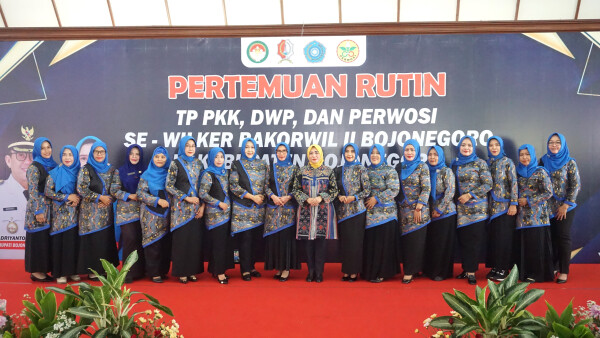 BOJONEGORO, arsip.bhantaran.com – Para kader Tim Penggerak Pemberdayaan dan Kesejahteraan Keluarga (TP PKK), Darma Wanita Persatuan (DWP), dan Persatuan Wanita Olahraga Seluruh Indonesia (Perwosi) se wilayah kerja Bakorwil II Bojonegoro menggelar pertemuan di Kabupaten Bojonegoro, Selasa (23/4/2024) di Pendopo Malowopati Bojonegoro. Pertemuan rutin tersebut membahas pengembangan UMKM, mengurangi stunting, pertukaran budaya hingga meningkatkan sinergitas.