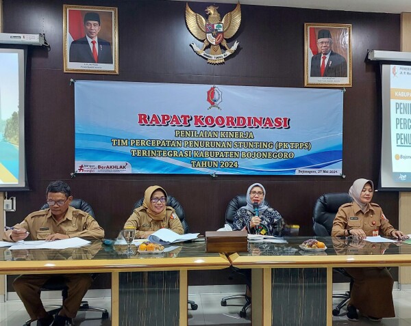 BOJONEGORO, arsip.bhantaran.com – Tim Percepatan Penurunan Stunting (TPPS) Terintegrasi Kabupaten Bojonegoro Tahun 2024 menggelar Rapat Koordinasi Penilaian Kinerja. Kegiatan digelar di Creative Room Lt. 6 Gedung Pemkab Bojonegoro Jl. P. Mas Tumapel Nomor 1, Senin (27/4/2024).