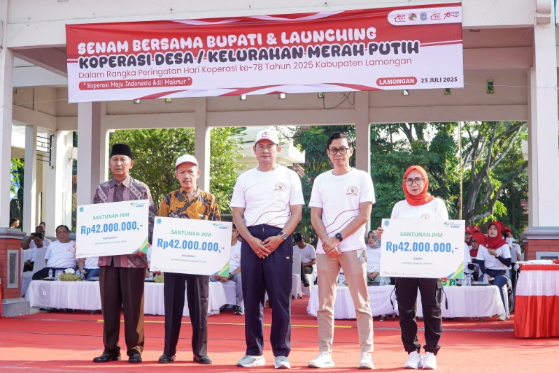 LAMONGAN, bhantaran.com – Bupati Lamongan Yuhronur Efendi launching 474 Koperasi Desa/Kelurahan Merah Putih (KDMP) di Lamongan serentak, Jumat (25/7/2025) di Alun-Alun Lamongan.