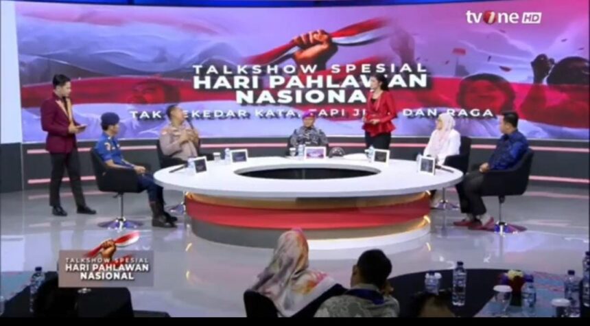 LAMONGAN, bhantaran.com – Ipda Purnomo, Kanit Binpolmas Polres Lamongan, diundang sebagai narasumber di TV One dalam program yang membahas” peringati Hari Pahlawan dengan tema “Tak Sekedar Kata, Tapi Jiwa dan Raga”. Selasa ( 11/11/2025