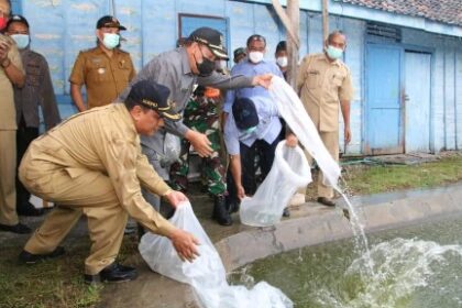 Perikanan Tangguh Lamongan 2021, Bupati Fadeli Tebar Benih dan Salurkan Bantuan Udang Vanami