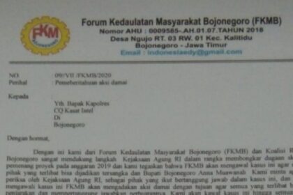 BOJONEGORO, arsip.bhantaran.com -- Forum Kedaulatan Masyakarat Bojonegoro (FKMB) mengagendakan bakal melakukan aksi damai dengan…