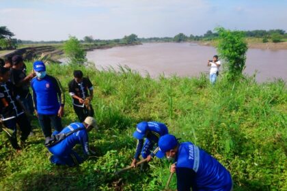 Cegah Longsor, Tagana Tuban Tanam Rumput Vetiver Ditepi Bengawan Solo