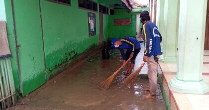 Personil Tagana saat Baksos membersihkan fasilitas umum di desa Cengkong Sabtu (10/1/21).…